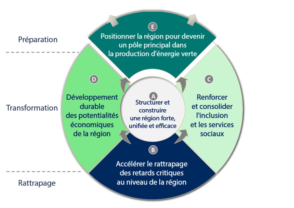 Il repose sur une vision ambitieuse visant à faire de la région de Guelmim-Oued Noun un pôle national pour les énergies renouvelables, un modèle en économie durable et circulaire, un leader en économie bleue, ainsi qu’une destination pour le tourisme durable.